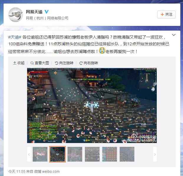 各位谕姐还记得梦回苏澜的慷慨老板伊人清脂吗?昨晚清脂又带起了一波狂欢,100组染料免费赠送!11点苏澜桥头的仙菇摊位已经排起长队,到12点开始发放的时候已经密密麻麻不分彼此……谕姐也想去苏澜蹲点啦!老板再爱我一次!